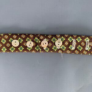 CARROT AND GIBBS bow tie in a brown, green, and orange silk featuring a floral pattern and adjustable buttoned fit. Handmade in USA.
