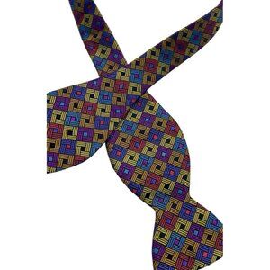 CARROT & GIBBS Men's 100% Silk LUXURY Self Bow Tie Blue Gold Geometric W:2.7"