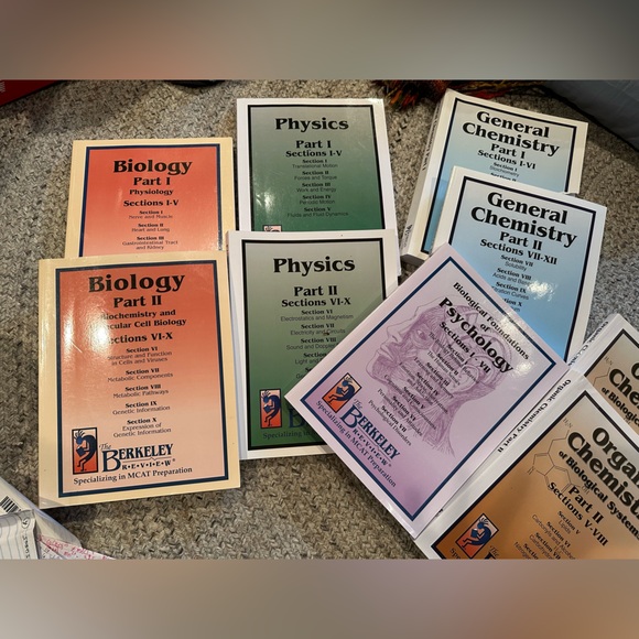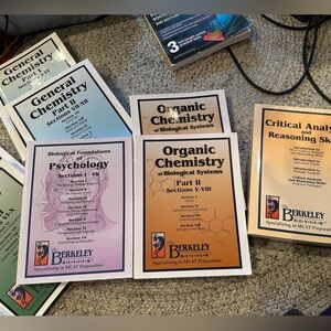 One book (gen chem part I) has a large chunk missing on front cover, as well as numerous highlights and pen notes. I’ve excellent to never used condition