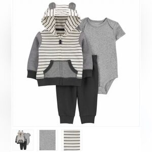 CARTER'S 3-Piece Little Jacket Set 3D Ears Baby Boy Grey Heathered newborn NWT