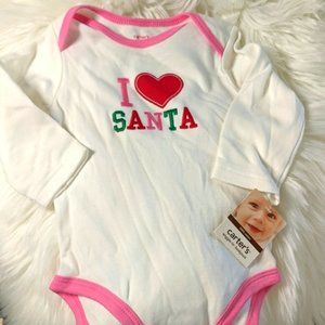 CARTER'S 9 Month White Bodysuit I Heart Love Santa Christmas NEW