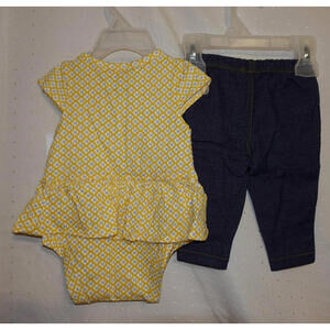BRAND NEW, CARTERS, TODDLER, GIRL, 2 PIECE, OUTFIT, YELLOW & BLUE, SIZE 3 MONTHS.