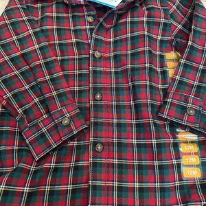 CARTERS BOY 12 MONTH GREEN RED PLAID SHIRT AND KHAKI PANT OUTFIT NEW