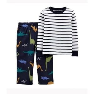 This 3 piece set includes two long sleeve cotton pajama tops and soft fleece pants. It is size 5 and made by Carter's. It is new with tags. Cute and comfy.