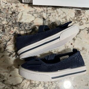 CARTER'S Canvas Shoes Navy Blue Glitter Mary Janes Elastic Strap and Bow 4