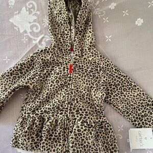 Carters Girls 6 month Fleece Jacket Leopard Print Full Zip Hooded NWT