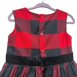 This charming sleeveless dress from Carter's is perfect for the holidays. Buffalo Check print in red and black plaid with a velvet bow accent at the waist. Button-back closure. Fully lined with Tulle mesh underlay for a full look.