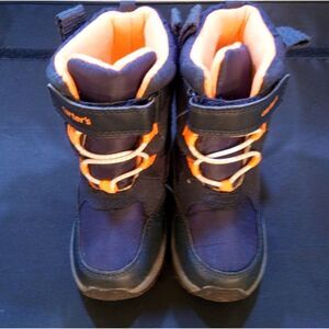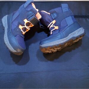 CARTER'S LACE UP TODDLER VELCRO LACE UP STRAP CLOSURE SNEAKER BOOT SIZE 9M TWO TONE COLOR LIKE NAVY BLUE &ORANGE boots put a sleek spin on classic combat styles. They've been crafted faux patent leather and feature a cushioned insole, lace-up closures, and set on rubber soles with plenty of tread. Wear yours with everything, from denim to dresses.Closure Type: Lace-Up, Side Zipper Upper/Outer Base Material 100% Polyurethene Lining Material Fabric Sole Material Content 100% Thermoplastic-RubberTHOS ITEMS IS PRE-OWNED EXCELLENT CONDITION WITH ONLY LIGHT SIGNS OF WEAR IF ANY CHECK THE PICTURES