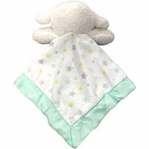CARTERS Lamb Lovey Security Blanket Rattle Toy Satin Stars Mint Green Yellow 12”