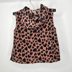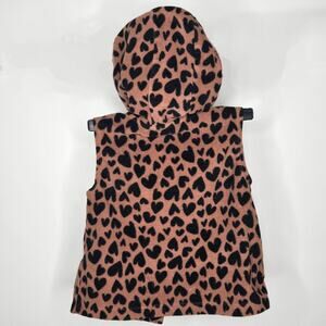 CARTERS Leopard-like Black Heart Print on Brown Fleece Hooded Sleeveless Jacket