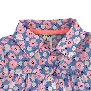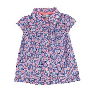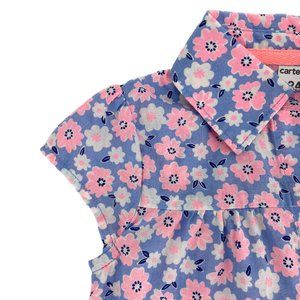 Description: In love with the floral prints with a touch of retro flair, this Carter's top will be perfect for her pre-school outfits or social events. Carter's top has a blend of white and pink flowers on a light blue background with a collar, button up front, pleated detailing and cap sleeves. Style with a cute light blue or pink cardigan for the cooler months and wear alone for the spring and warmer months.