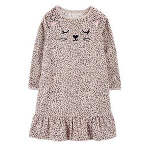 CARTER'S NWT Girls Size 8-10 Leopard Fleece Nightgown Animal Print Long Sleeve