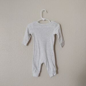 Carter's pajamas that say "eat, sleep, play, repeat" on the front. They have a little rust stain spot from a dummy string. Could come off with some work I'm sure.