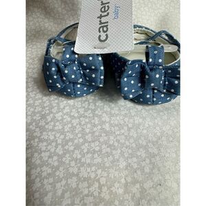 CARTER’S SIZE 9-12M Chambray Mary Jane Crib Shoes - Baby Girl