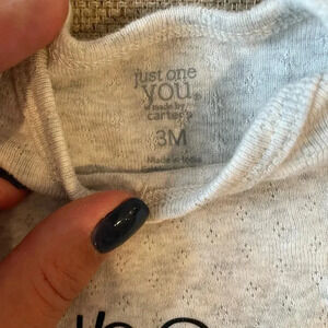 Carters Thanksgiving onesie. Size 3 months. Custom onesie that says “my rolls are homemade”. New without tags only washed. Gray patterned material with pink bow detail. Perfect for turkey day!!