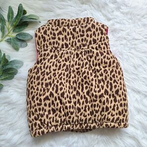 Girls soft puffer vest in an leopard animal print. The exterior is a corduroy type material, and the interior lining is a solid pink. They have coordinating pink snap buttons down the front. Please see all photos. Thank you so much for looking. I am always open to reasonable offers. Have a fantastic day!