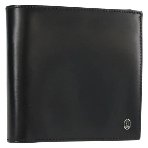 CARTIER Bifold Wallet Leather Black Auth am9307V