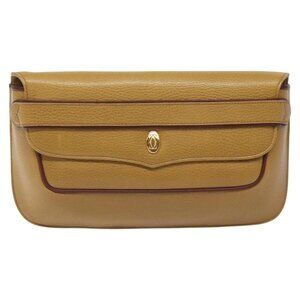 CARTIER Clutch Bag Leather Yellow Gold Auth BA2823