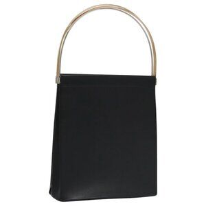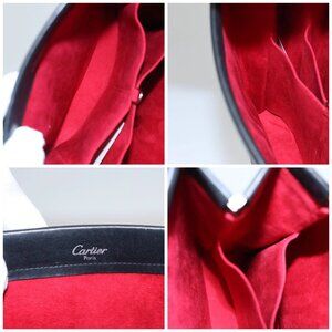 CARTIER Hand Bag Leather Black Gold Silver Auth