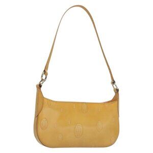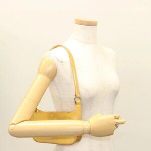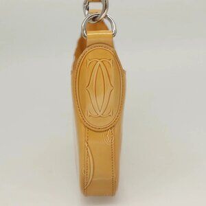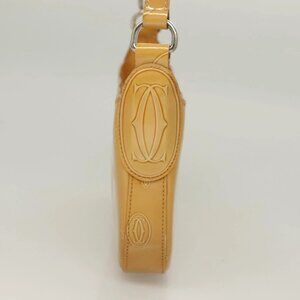 CARTIER Happy Birthday Hand Bag Patent leather Beige Silver Auth sw1260