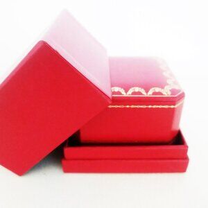 This listing is for a beautiful and authentic Cartier ring box. It is in the signature red and gold and well made as you would expect from this luxury brand. It is the complete set, the presentation box and the ring box in their original condition.
