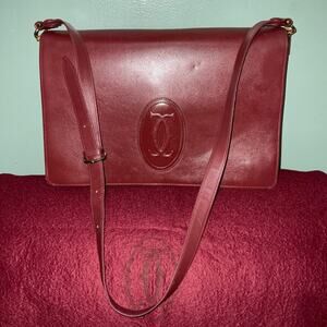 CARTIER Vintage 1980’s Maroon Crossbody Purse Shoulder Bag W/ Card and Dust Bag