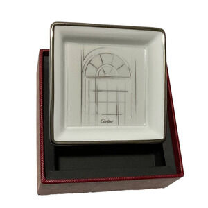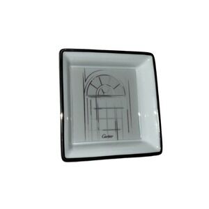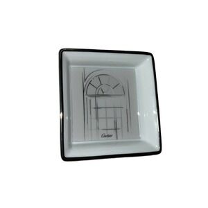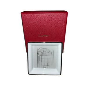 A lux French porcelain ring dish from Cartier .... the "Paris Boutique" motif In fine white porcelain with platinum motif and trim.