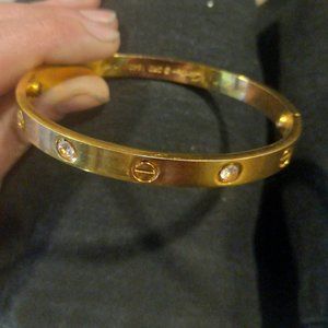 CARTIER love bracelet,size 20,18k yellow gold,4 diamonds,old ingagement bracelet worn a couple times,comes with velvet bag,does not come with screw driver.