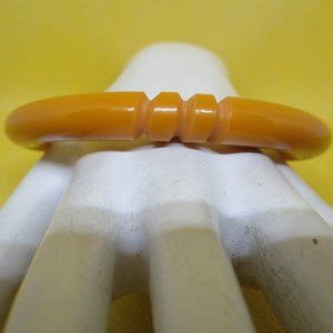 Never Worn vintage thick Art Deco 1940s carved butterscotch mustard yellow colored bakelite bangle bracelet. Simichrome