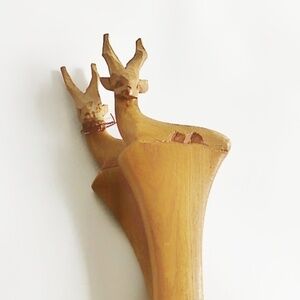 CARVED Wooden Elk Salad Fork Spoon Utensils Kenya New