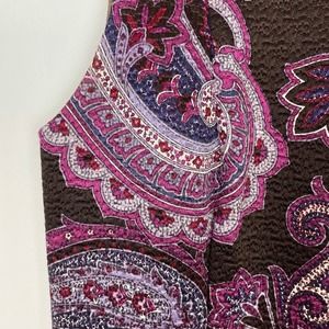 Gorgeous Caryna Nina Haute Couture Dress. Textured paisley patterned fabric - super soft but substantial. Fully lined. Not sure of fabric content, but it feels incredibly soft and silky, but with some weight to keep its shape. 9" back slit. Back button fasten. Long side zip for easy in and out. These dresses are custom made and start at $1,000 each. Impeccably crafted.