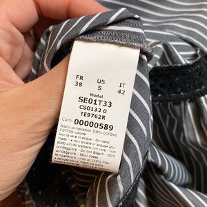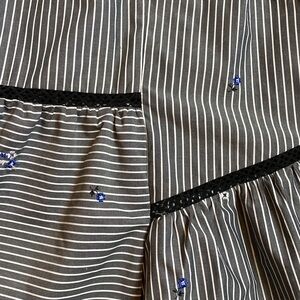 EUC. Mini floral embroidery. Made in Italy. Gorgeous, strappy cotton shirt, camisole top. Asymmetrical and gorgeous with little blie flowers with black stems. Main colors are gray and white stripes with black lace. "Cloth and Steel Edie Black top with flowers." Model SE01T33