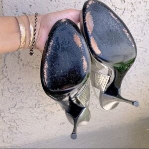 CASADEI 6027 Peep Toe Slingback High Heels in Silver Metallic Steel Sz. 7