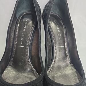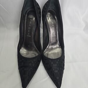 CASADEI Black Woven 4" Heels Pointed Toe Stilettos Size 7B Made in Italy