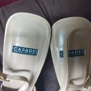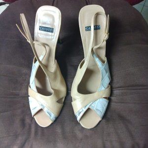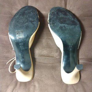 Amazing shoes, sure to get you noticed. Adjustable strap with croc accent on side and across the vamp. Shiny 4 1/2" stiletto heel.