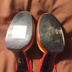❤️CASADEI Red Tan PLATFORM STILETTO PUMPS SHOES 8 M Italy