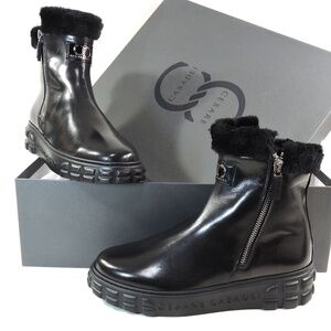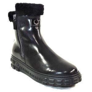 CASADEI 🇮🇹 WOMEN'S BLACK SOFT LEATHER COMFORT FASHION WINTER LAMB FUR BOOTIE