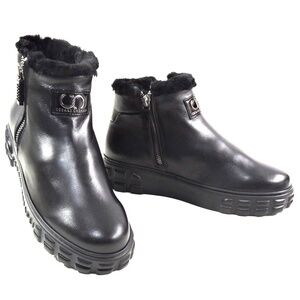 CASADEI 🇮🇹 WOMEN"S BLACK SOFT LEATHER COMFORT FASHION WINTER LAMB FUR BOOTIE