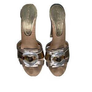 Casadi Heels Gold Size 5.5/6. The measurement is 22cm and according to casadi sizing chart it is a 5.5-6 normal wear and tear as shown in pictures