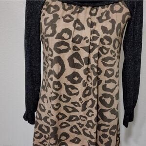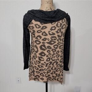 CASALEE leopard super soft cowl neck asymmetrical hem tunic size medium