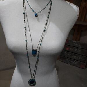 Beautiful cascade necklace. Blue stones accented with a silver chain. 22" long with a 3 inch extender.