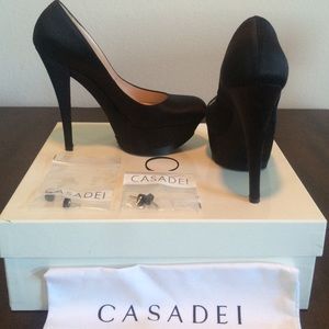 Italian shoe label Casadei is known for fantastically beautiful feminine designs, Casadei shoes are all made in Italy and hand-finished by skilled craftsmen. Includes original dust bag and heel accessories shown in pic.