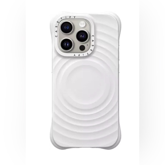 Protect your phone with this stylish white case. Its vibrant color adds a touch of personality to your device. CASETiFY Ripple iPhone 15 Pro Max Case. [ 2X Military Grade Drop Tested/Wave Textured/Compatible with Magsafe ]