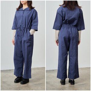 Casey Casey's take on a jumpsuit crafted from a crisp, papery midweight cotton. Details include short sleeves, an adjustable drawstring waist, patch side pockets at the hips, one buttoned back patch pocket, and a spread collar with a concealed half buttoned front.