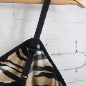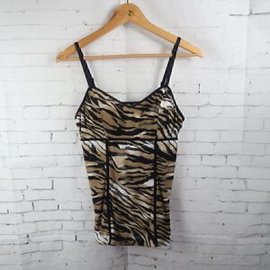 TIGER STRIPE ANIMAL PRINT CAMISOLE TOP SIZE MEDIUM ADJUSTABLE STRAPS BUILT IN PADS BY CASHE PRE OWNED NO FLAWS