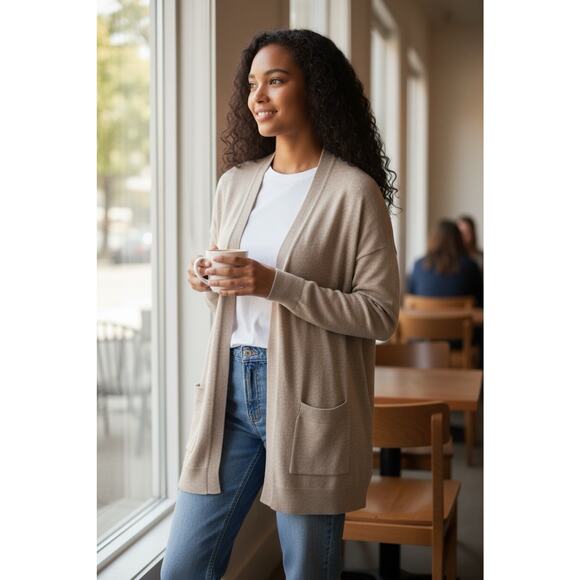 CASHMERE Blend Cardigan Long Sleeve Tan Size M Lightweight Soft Beige