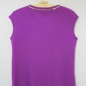 CASHMERE Pullover Knit Sweater Vest Sleeveless Cuddly Purple Rhinestones