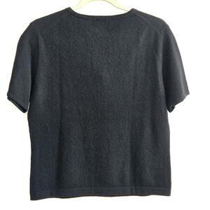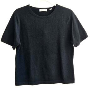 CASHMERE SWEATER BY LORD AND TAYLOR. SIZE TAG WAS REMOVED BUT MEASURMENTS ARE PIT TO PIT 19 AND LENGTH IS 22. ACCORDING TO THE SIZE CHART IT IS A MEDIUM. SHORT SLEEVE. CREW NECK. COLOR IS BLACK.TWO PLY.