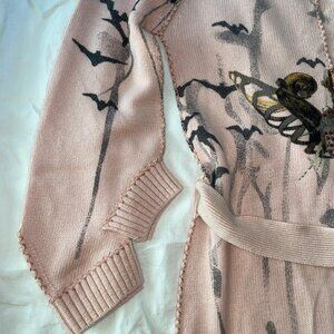 a single detail. Every part of this full length sweater is detailed with hand embroidery and/or a bird and