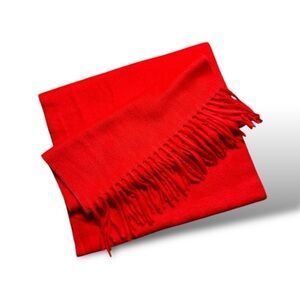 CASHMINK, MEN/WOMEN, RED, 100% ACRYLIC SCARF. 26” WITH ADDITIONAL 2 3/4” FRINGE.